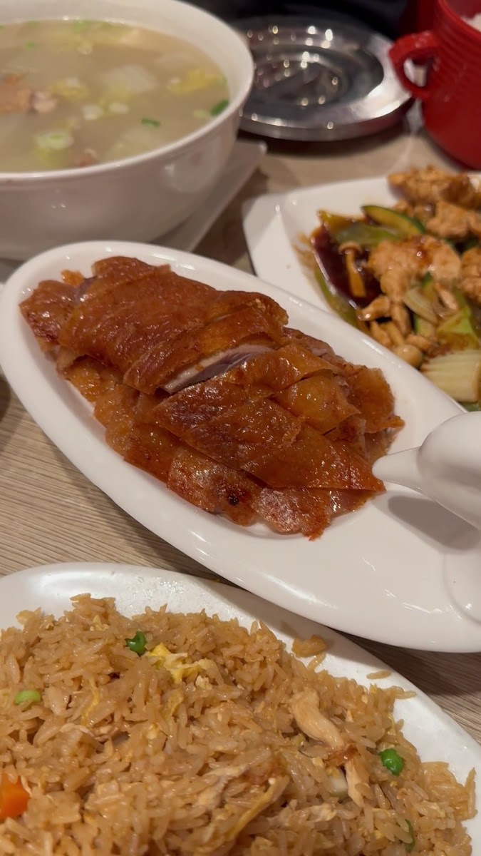 We love the Peking duck here- absolutely delicious. The duck soup is such a nice touch. Portions are really big and the service is friendly. A must try!!