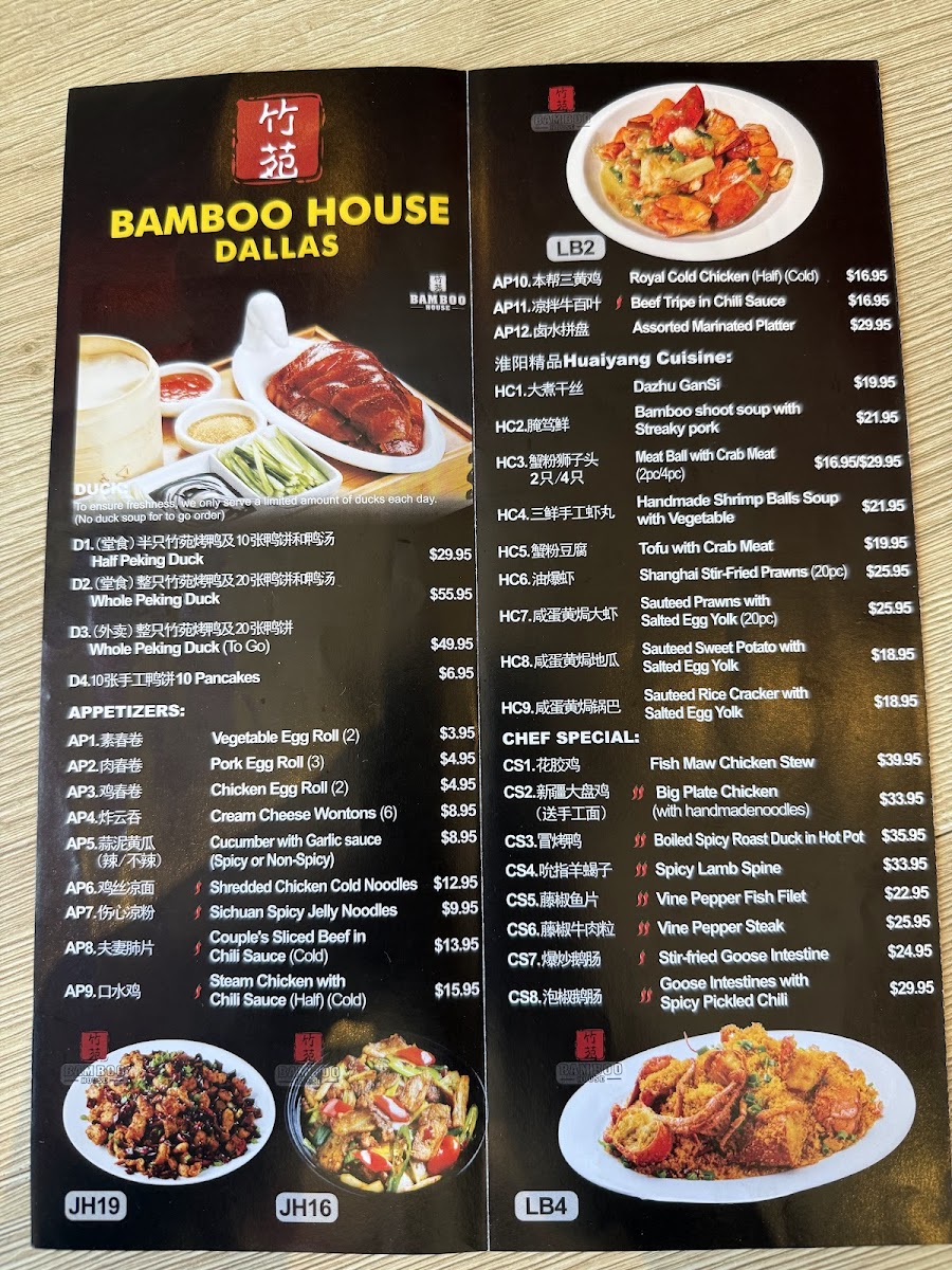The menu at Bamboo House Dallas offers a thoughtful selection of comforting, approachable dishes rooted in Chinese home-style cooking. With a focus on steamed and pan-fried dumplings, hearty noodle soups, and well-balanced vegetable dishes, the menu invites diners to enjoy familiar flavors in a relaxed setting.