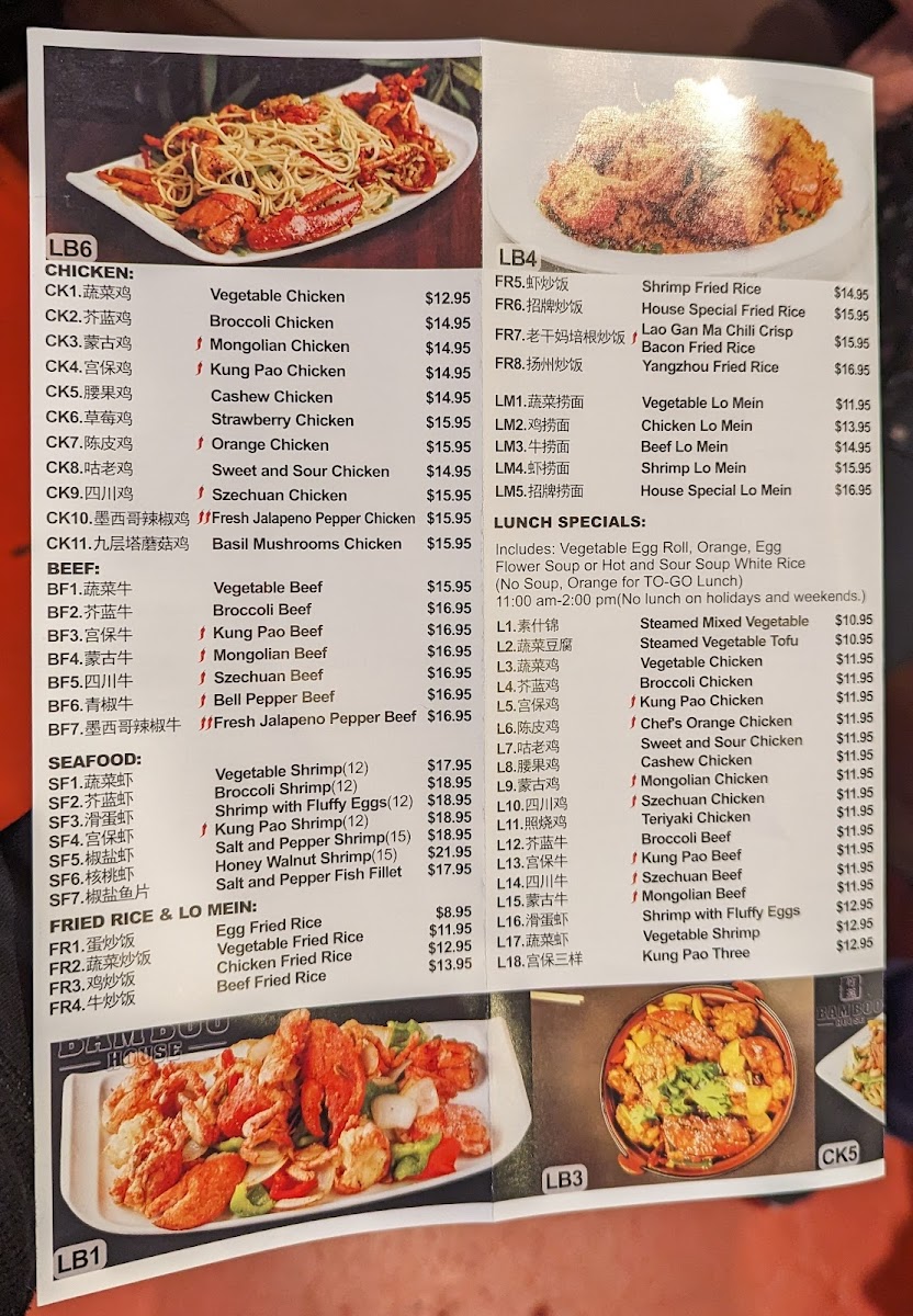 This menu complements the welcoming atmosphere of Bamboo House, where large portion sizes and a variety of dishes make it easy to gather around the table and enjoy a leisurely meal together. Whether stopping by for a comforting solo lunch or a lively group dinner, the offerings support moments of both simple enjoyment and shared discovery.